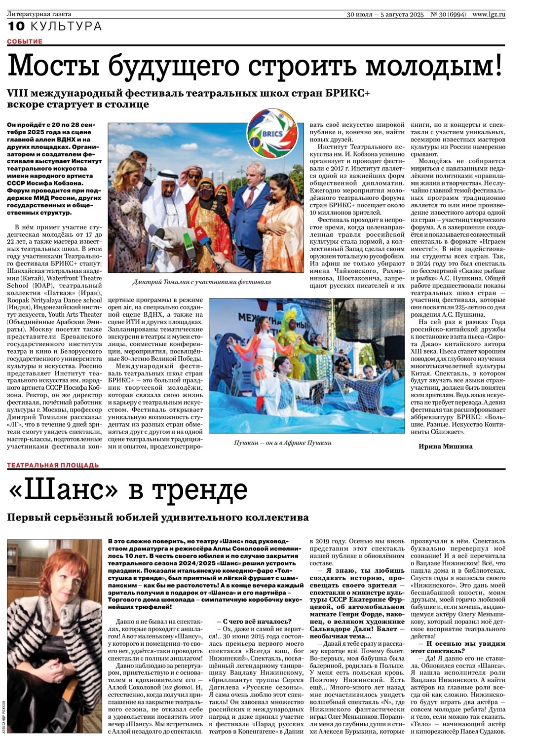 Литературная газета рассказала о предстоящем, VIII Фестивале театральных школ стран …