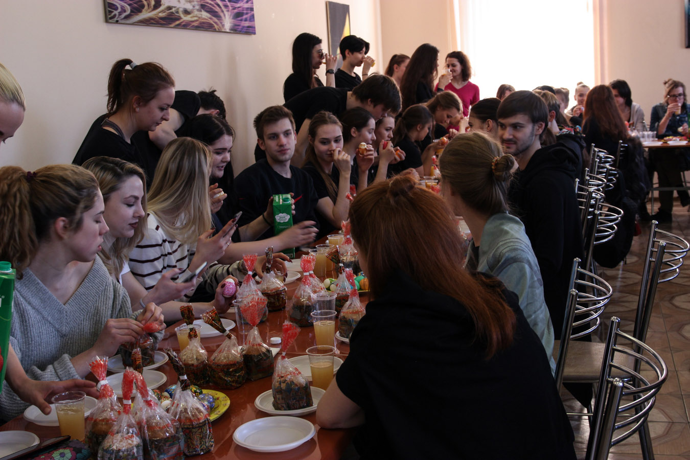 В заключении отец Димитрий благословил традиционную пасхальную трапезу – куличи и крашеные яйца, которую студенты разделили вместе со своими педагогами.