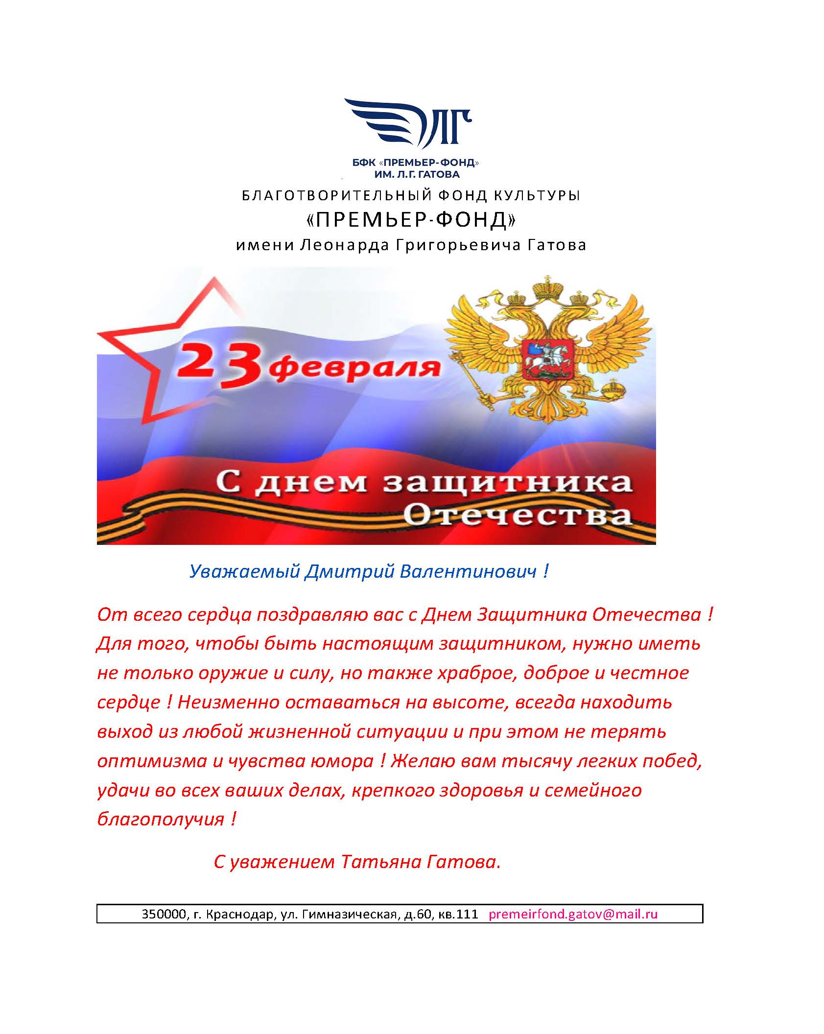 Поздравление Ректора ИТИ от Благотворительного фонда культуры «ПРЕМЬЕР-ФОНД» имени Леонарда Григорьевича Гатова.