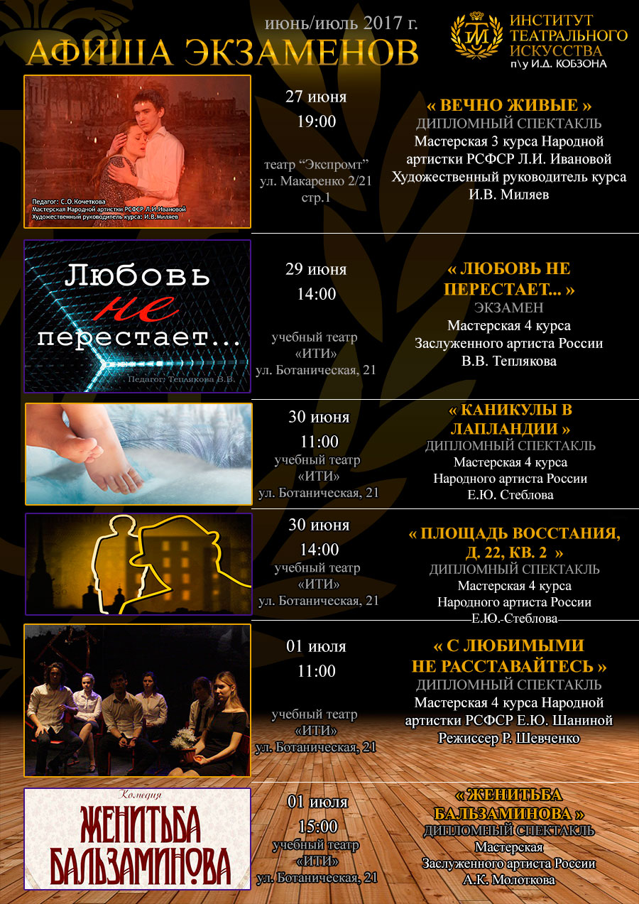 Ждем всех желающих посетить экзамены студентов Института театрального искусства!
