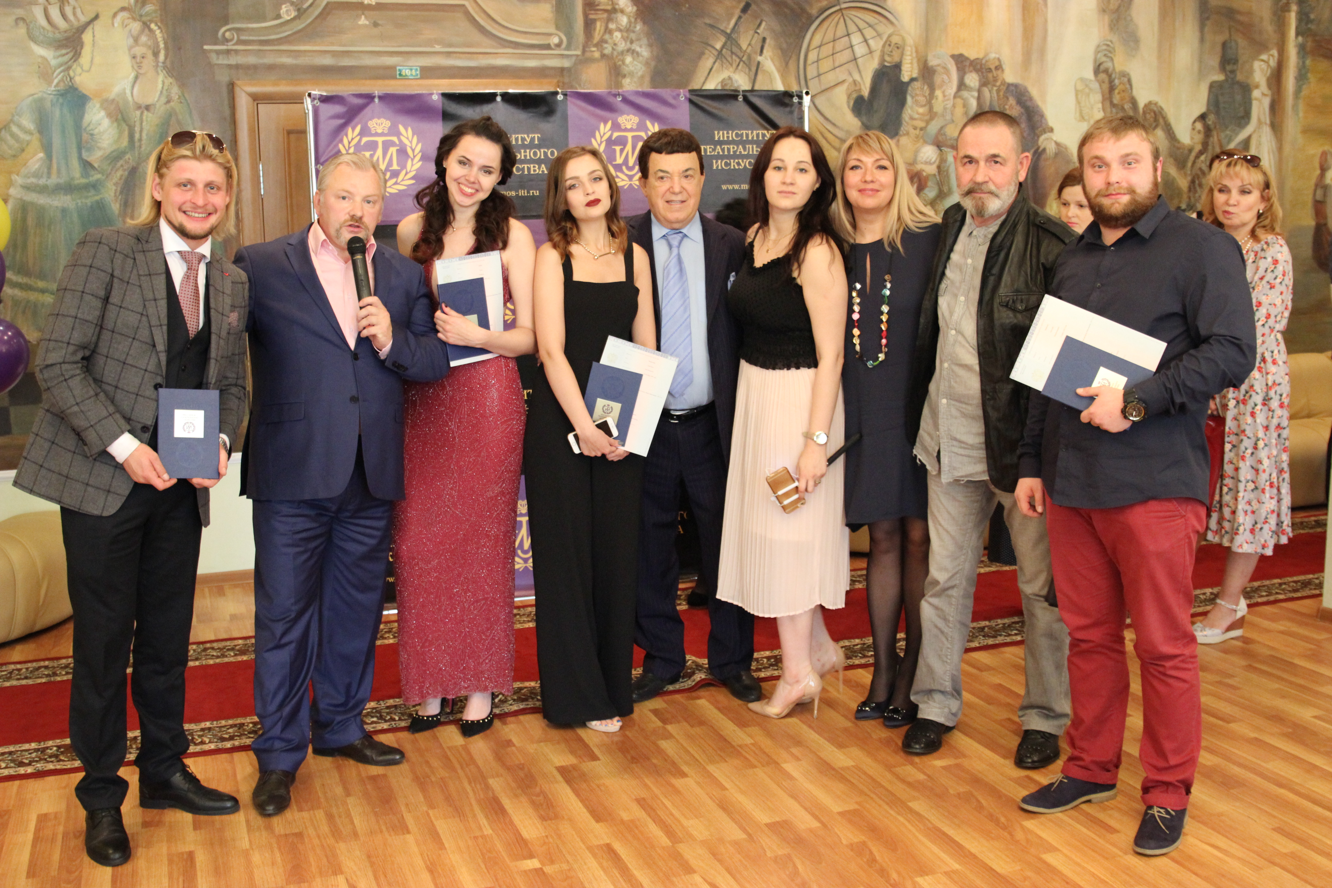 диплом ити 2017Сегодня выпускникам Института театрального искусства п/у И.Д. Кобзона вручили дипломы о высшем образовании. Впервые ИТИ выпустил дипломированных режиссеров и хореографов, свои дипломы также получили профессиональные актеры. На вручении присутствовал Президент института, Народный артист СССР Иосиф Давыдович Кобзон. Он предложил выпускникам встречаться каждый год в первых числах июля и пожелал добиться всего в профессии. Ректор ВУЗа Дмитрий Валентинович Томилин отметил, что многие здесь не просто выпускники, а первые дипломированные специалисты института, которые поверили в молодой ВУЗ и доверили ему свою судьбу. На торжественном вручении дипломов также присутствовали мастера курсов и педагоги. Приятно отметить, что почти половина дипломов — красного цвета, а многие наши выпускники уже трудоустроены. Например, выпускники факультета «Хореографическое искусство» все уже работают по профессии.