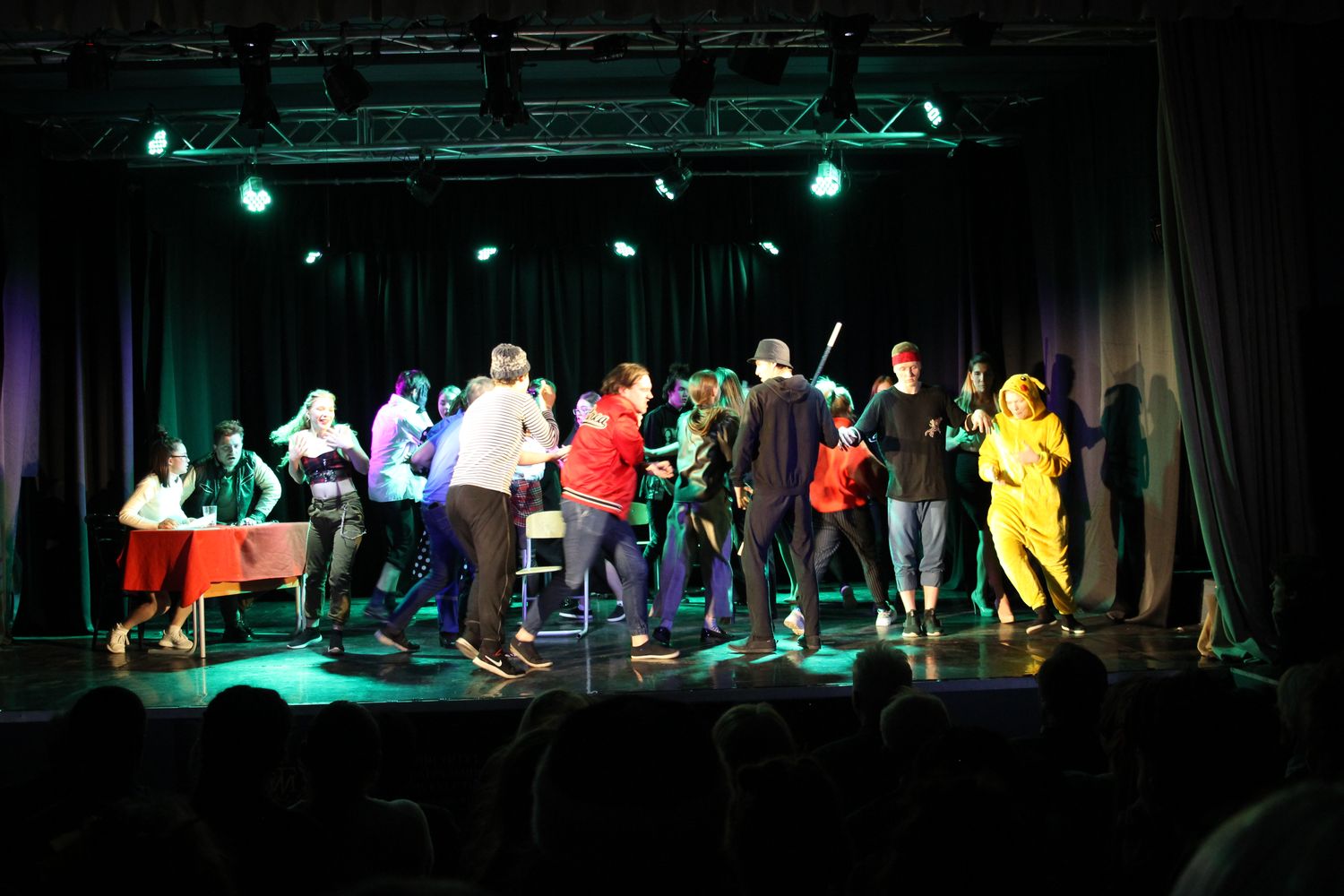 На сцене Учебного театра института (база АУК «Московского художественного театра комедии») прошел традиционный ежегодный студенческий фестиваль в двух отделениях. Темой первого отделения стало выступление первокурсников -«Знакомьтесь, 1-й курс»!.