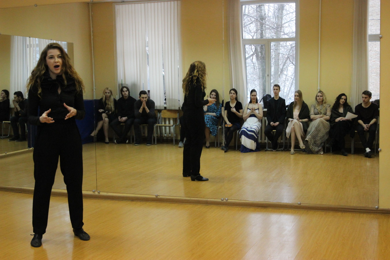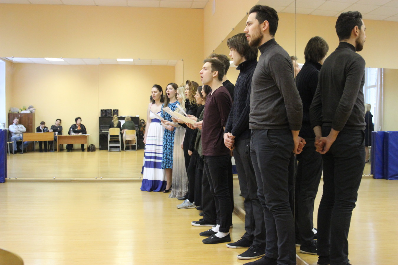 А на зачете по вокальной подготовке и ансамблевому пению студенты пели на разных языках. Волнение сказывалось. Кто-то пел хорошо, кого-то спасала актерская игра.