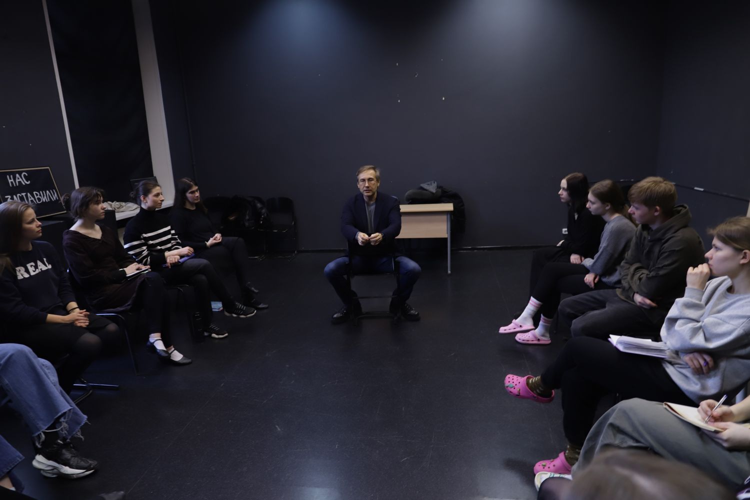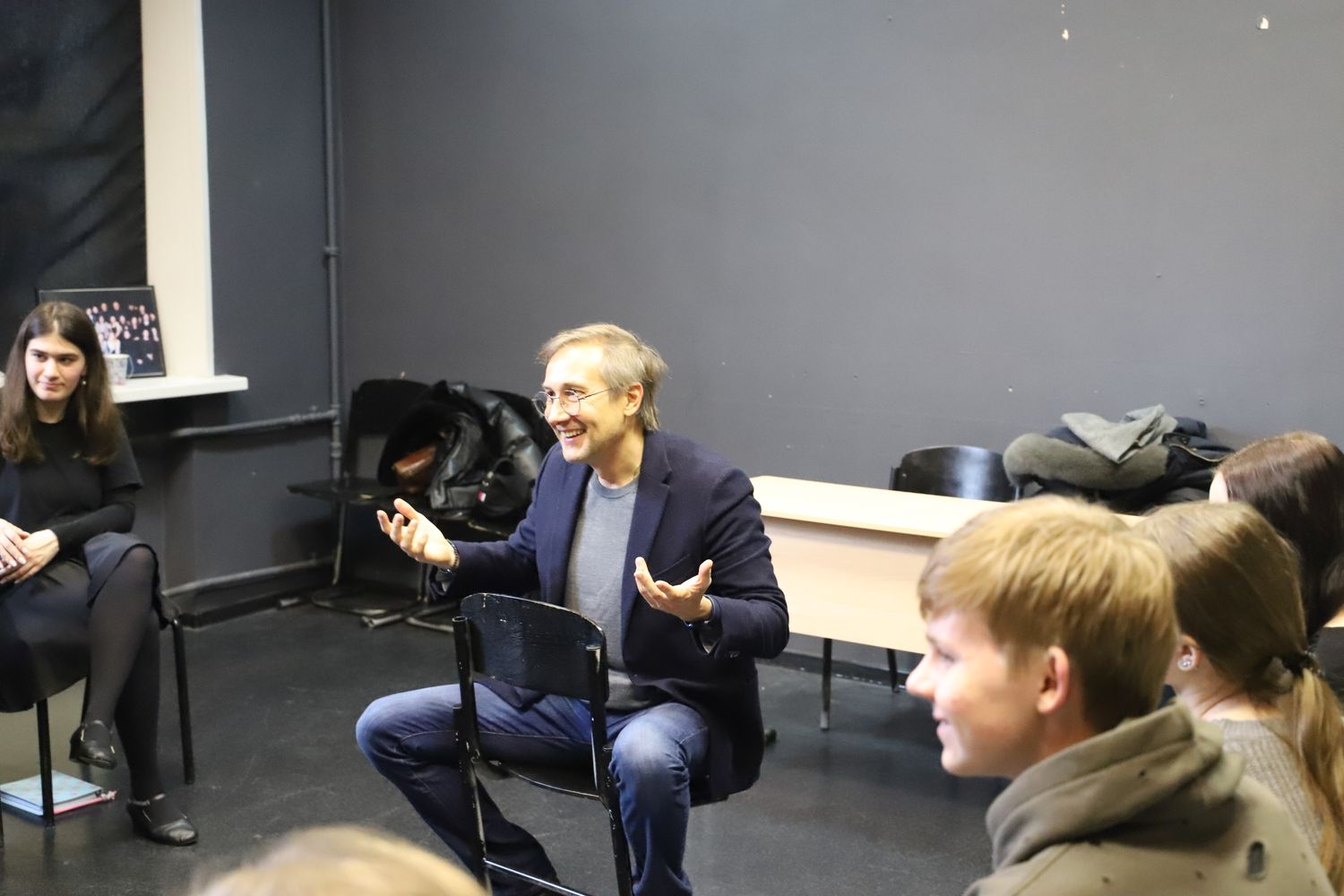 Российский кинорежиссёр и сценарист, президент Гильдии кинорежиссёров России, Лауреат двух Государственных премий РФ Николай Лебедев провел встречу с нашими первокурсниками. Поговорили о многом, в том числе и о вдохновении, о процессе производства фильмов, кастингах и интересных случаях на съемках.